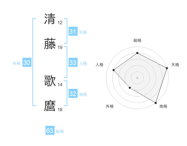 清藤 歌麿さんの総格は63画の4点!