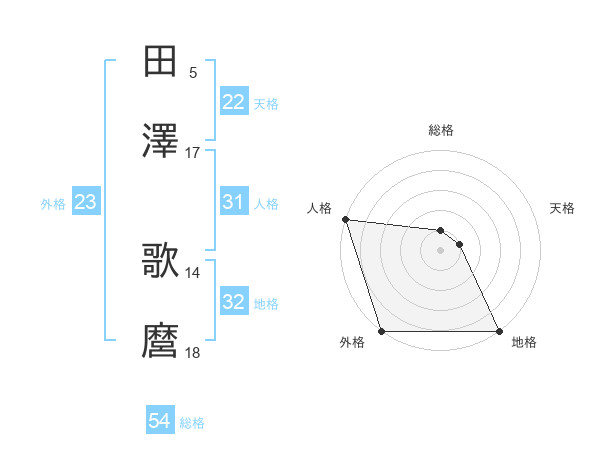 田澤 歌麿さんの外格は23画の5点!