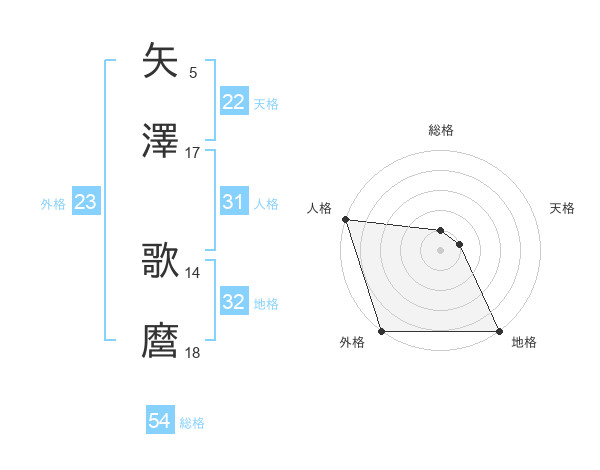 矢澤 歌麿さんの総格は54画の1点!