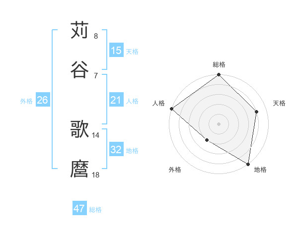 苅谷 歌麿さんを姓名の画数から五運を鑑定