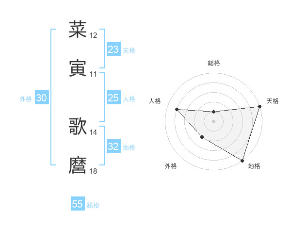 菜寅 歌麿さんの天格は23画の5点!