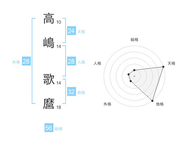 高嶋 歌麿さんの総格は56画の1点!