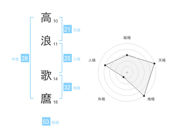 高浪 歌麿さんの天格は21画の5点!