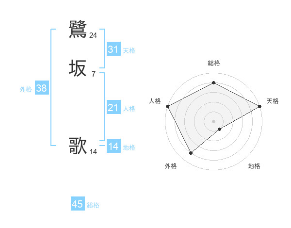 鷺坂 歌さんの総格は45画の4点!