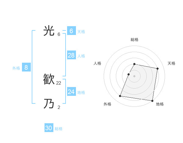 光 歓乃さんの総格は30画の2点!
