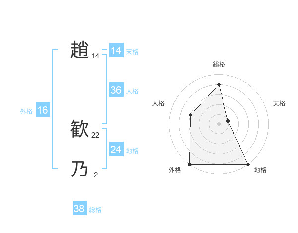 趙 歓乃さんの総格は38画の4点!