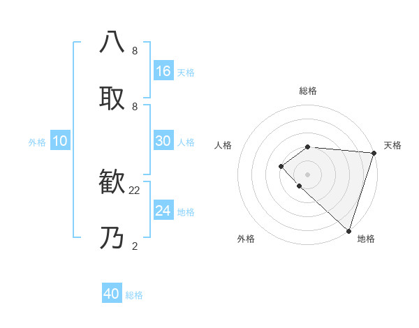 八取 歓乃さんを姓名の画数から五運を鑑定