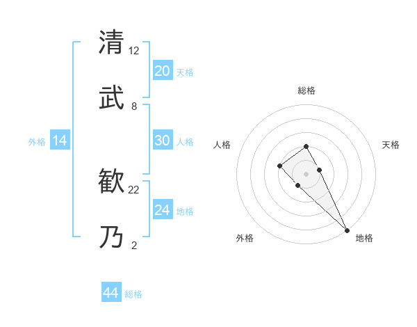 清武 歓乃さんを姓名の画数から五運を鑑定