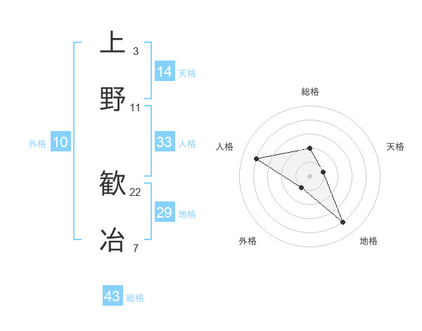 上野 歓冶さんを姓名の画数から五運を鑑定