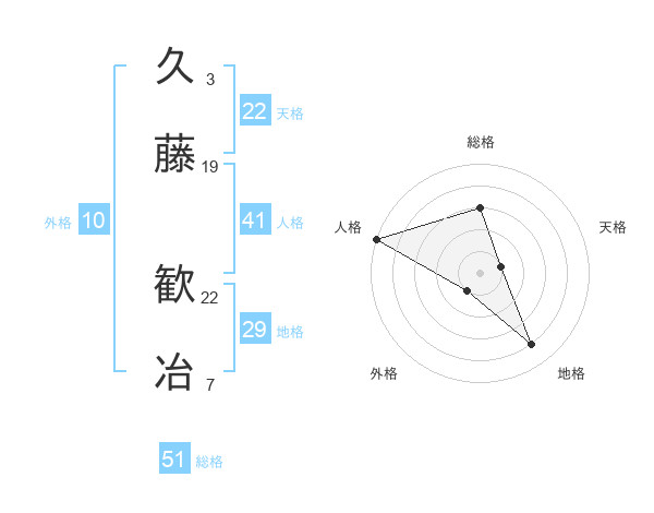 久藤 歓冶さんの総格は51画の3点!