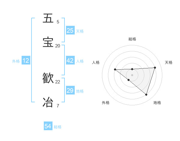 五宝 歓冶さんを姓名の画数から五運を鑑定