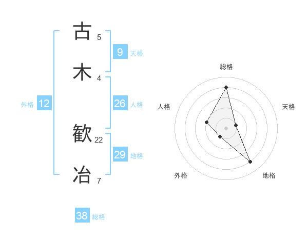 古木 歓冶さんを姓名の画数から五運を鑑定