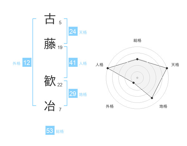 古藤 歓冶さんの天格は24画の5点!