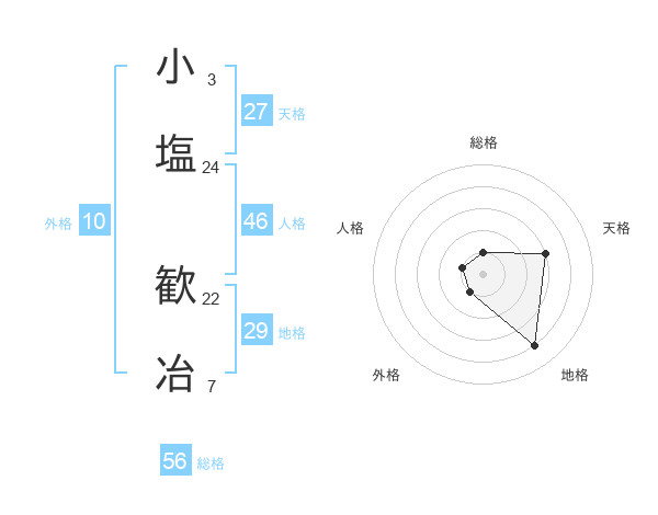 小塩 歓冶さんの総格は56画の1点!