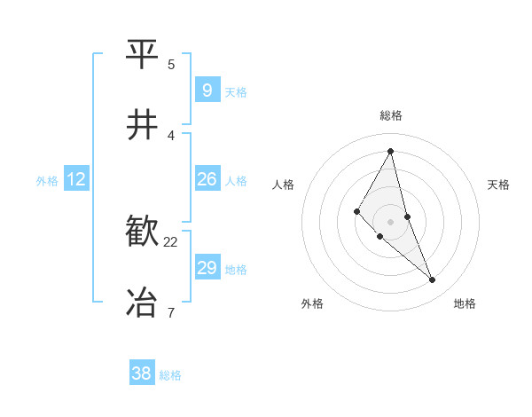平井 歓冶さんの総格は38画の4点!