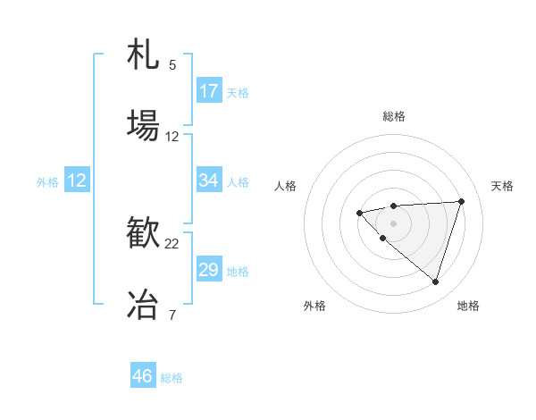 札場 歓冶さんの総格は46画の1点!