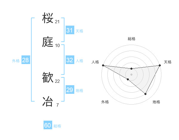 桜庭 歓冶さんの総格は60画の1点!
