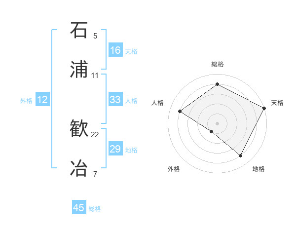 石浦 歓冶さんの総格は45画の4点!