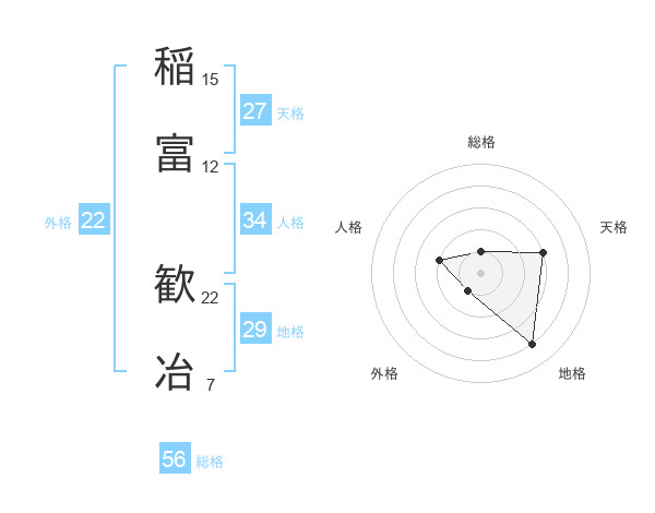 稲富 歓冶さんを姓名の画数から五運を鑑定