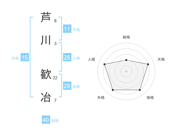 芦川 歓冶さんを姓名の画数から五運を鑑定
