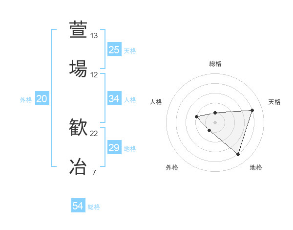 萱場 歓冶さんを姓名の画数から五運を鑑定