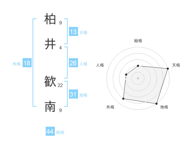 柏井 歓南さんの天格は13画の5点!