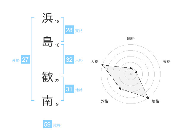 浜島 歓南さんの総格は59画の1点
