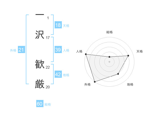 一沢 歓厳さんの総格は60画の1点!