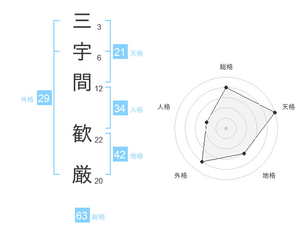 三宇間 歓厳さんの天格は21画の5点!