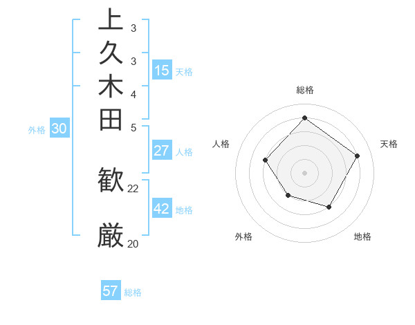 上久木田 歓厳さんを姓名の画数から五運を鑑定
