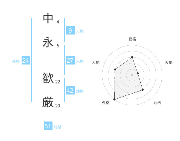 中永 歓厳さんを姓名の画数から五運を鑑定