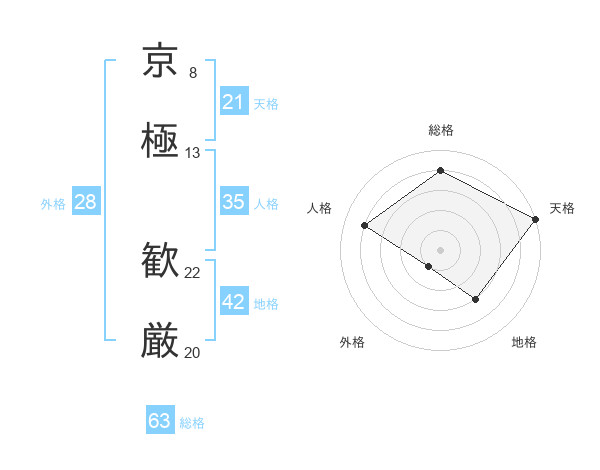 京極 歓厳さんの総格は63画の4点!