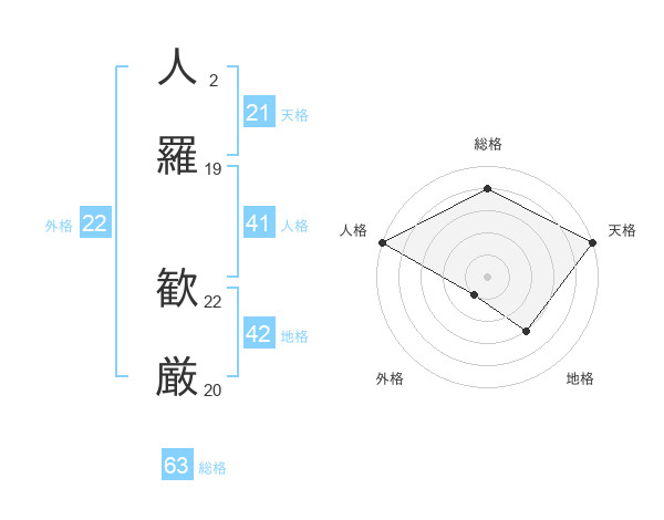 人羅 歓厳さんを姓名の画数から五運を鑑定