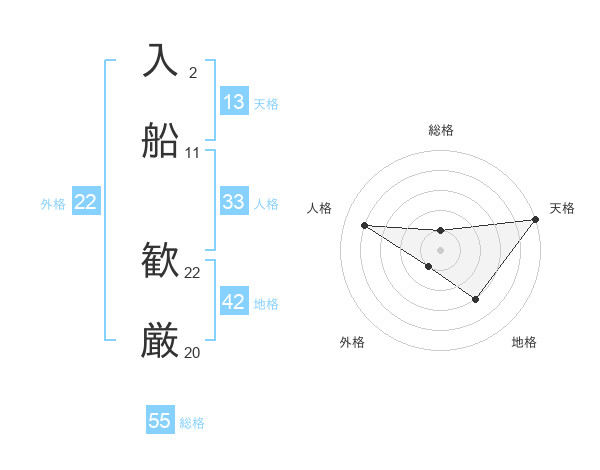 入船 歓厳さんを姓名の画数から五運を鑑定