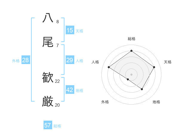 八尾 歓厳さんの総格は57画の4点!