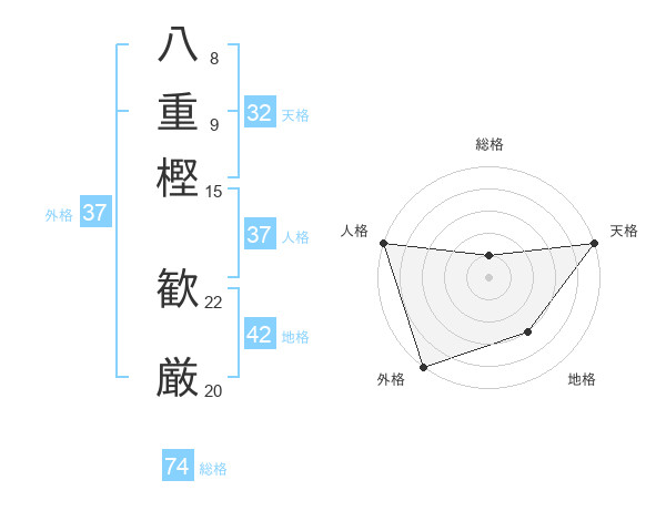 八重樫 歓厳さんの総格は74画の1点!