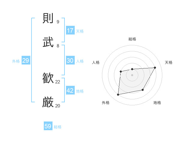 則武 歓厳さんを姓名の画数から五運を鑑定