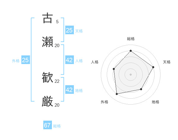 古瀬 歓厳さんを姓名の画数から五運を鑑定