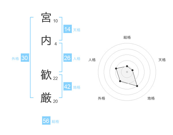宮内 歓厳さんの総格は56画の1点!