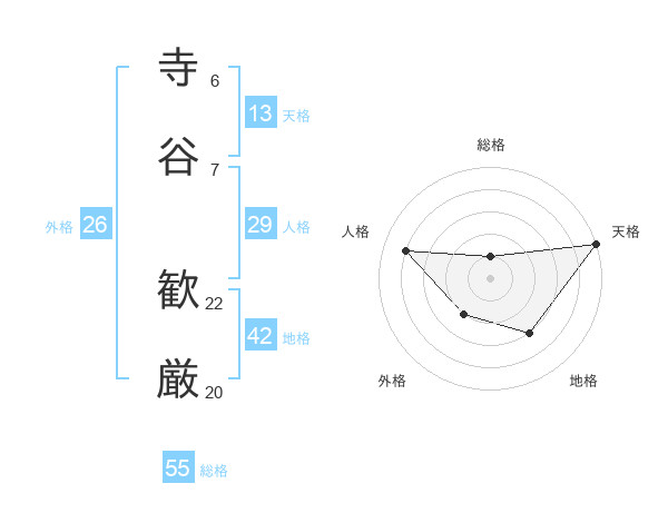 寺谷 歓厳さんを姓名の画数から五運を鑑定