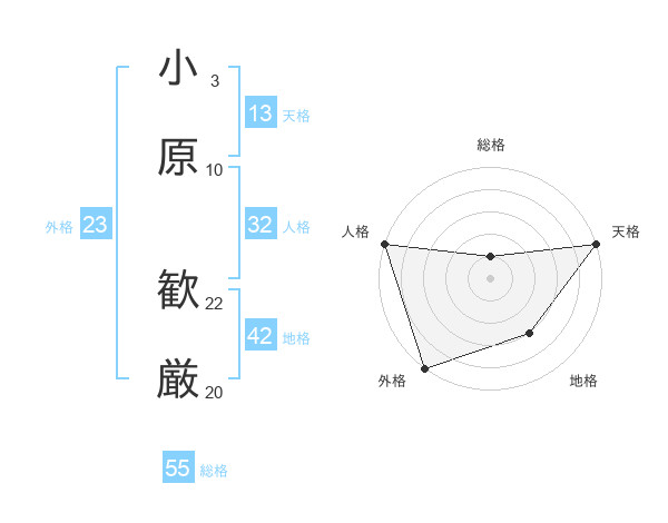 小原 歓厳さんの総格は55画の1点!
