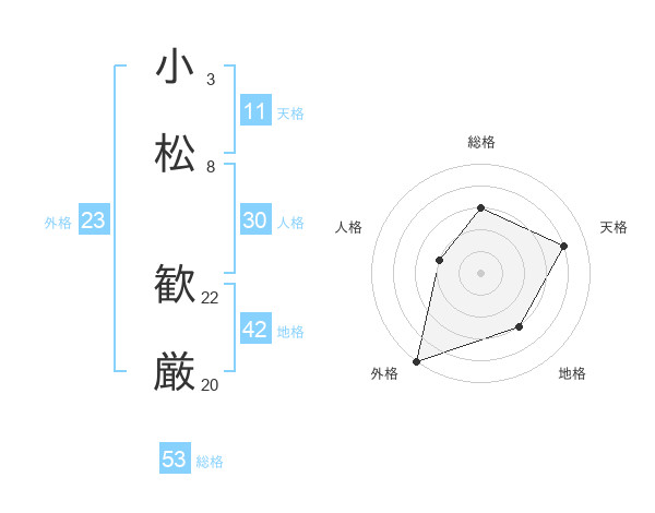 小松 歓厳さんの総格は53画の3点!