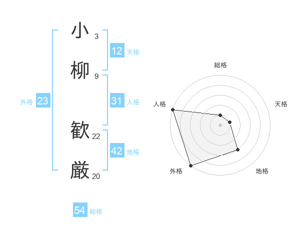 小柳 歓厳さんを姓名の画数から五運を鑑定