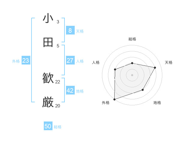 小田 歓厳さんの総格は50画の2点!