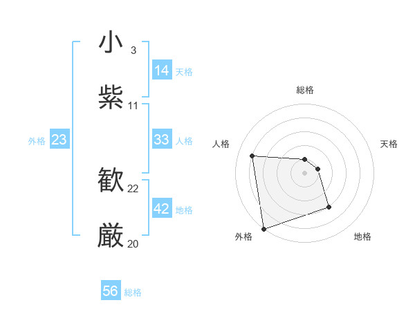 小紫 歓厳さんを姓名の画数から五運を鑑定