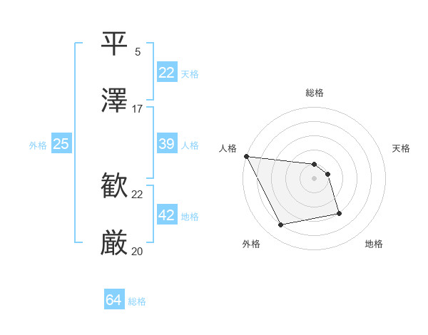 平澤 歓厳さんを姓名の画数から五運を鑑定
