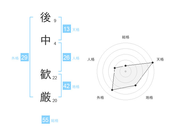 後中 歓厳さんを姓名の画数から五運を鑑定