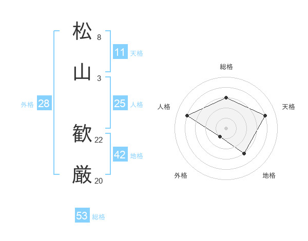 松山 歓厳さんの総格は53画の3点!