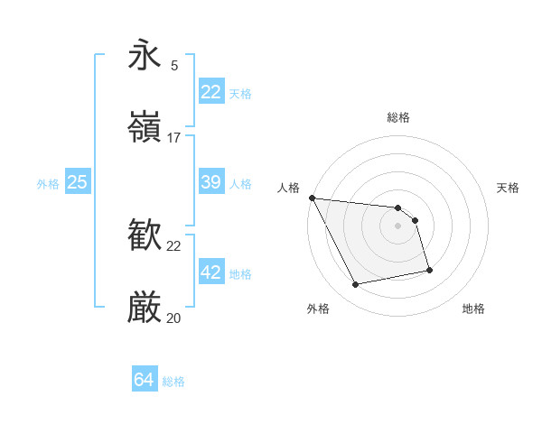 永嶺 歓厳さんを姓名の画数から五運を鑑定