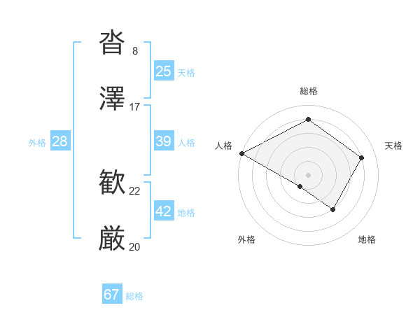 沓澤 歓厳さんを姓名の画数から五運を鑑定